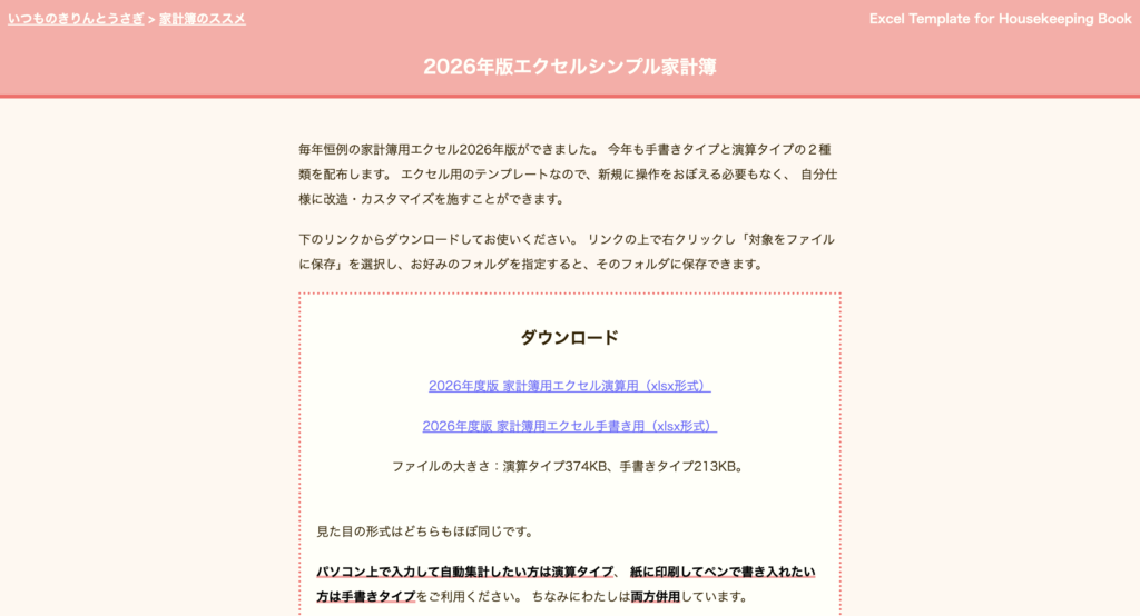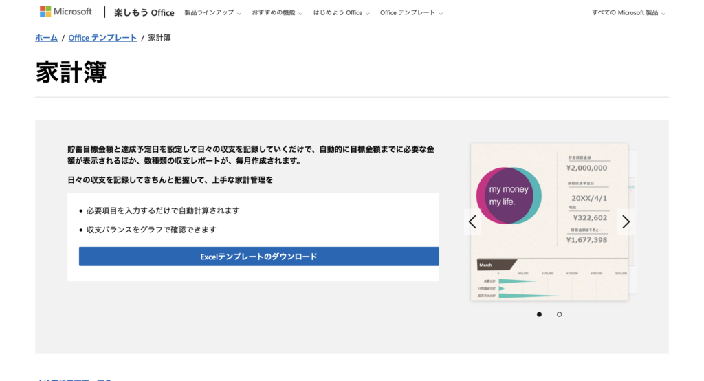 スタンダードな家計簿のテンプレートをダウンロードできます。