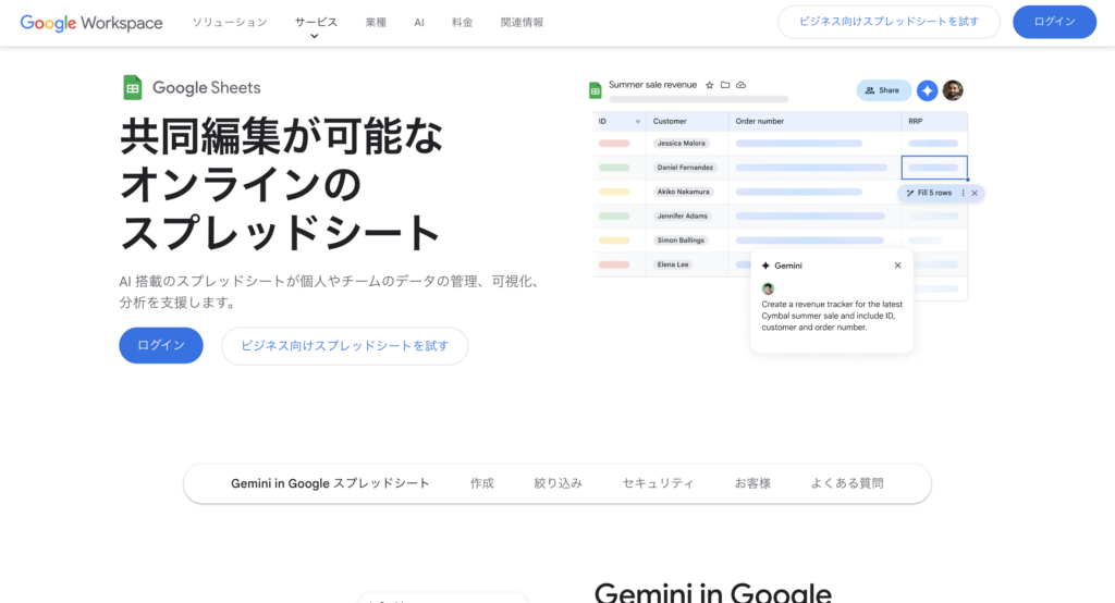 URL:https://workspace.google.com/intl/ja/products/sheets/