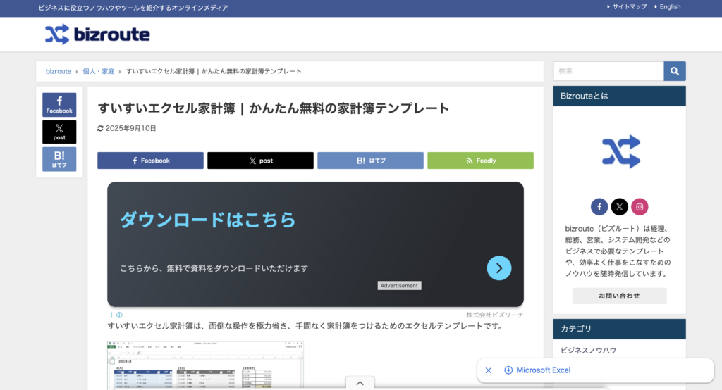 | 特徴 | 中小企業や個人事業主向けのエクセル書式を提供 |