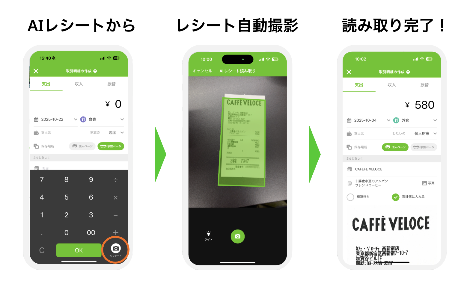 銀行口座やクレジットカードなどの金融機関を連携すると、金融機関の情報を取得し、自動で家計簿に反映されます💳