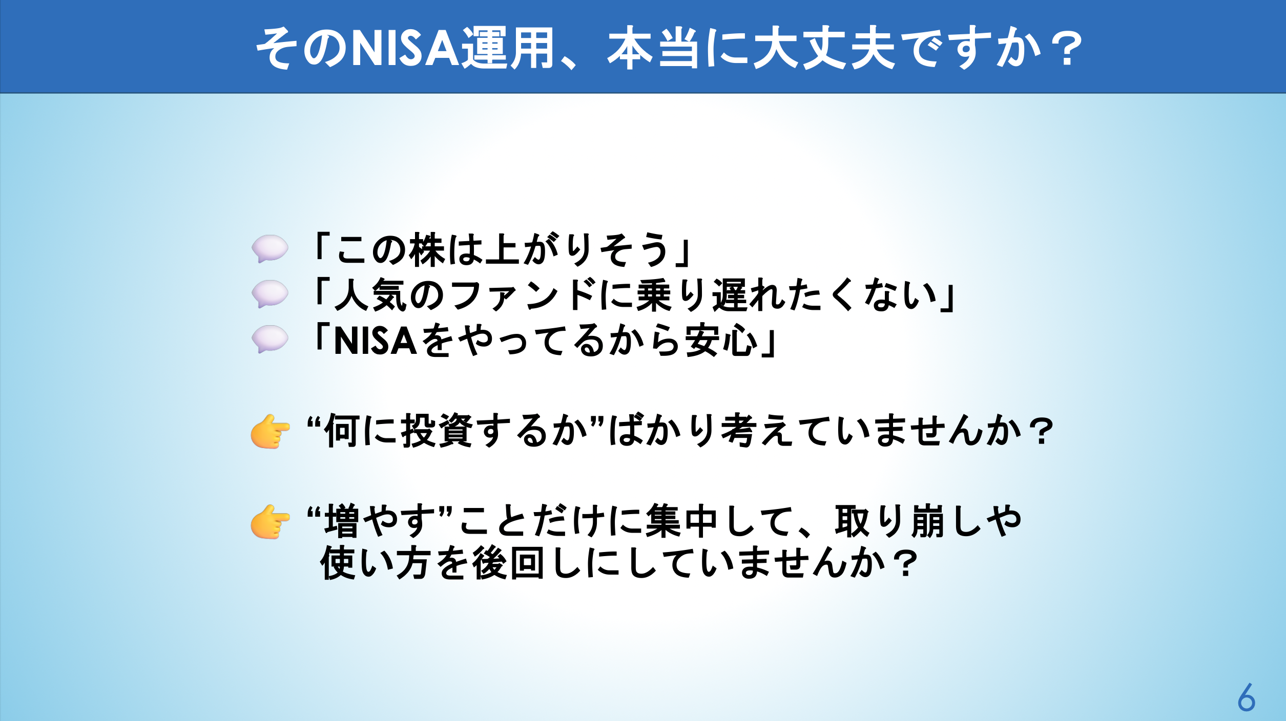 NISAは一度商品を決めたら、それで終わりではありません。