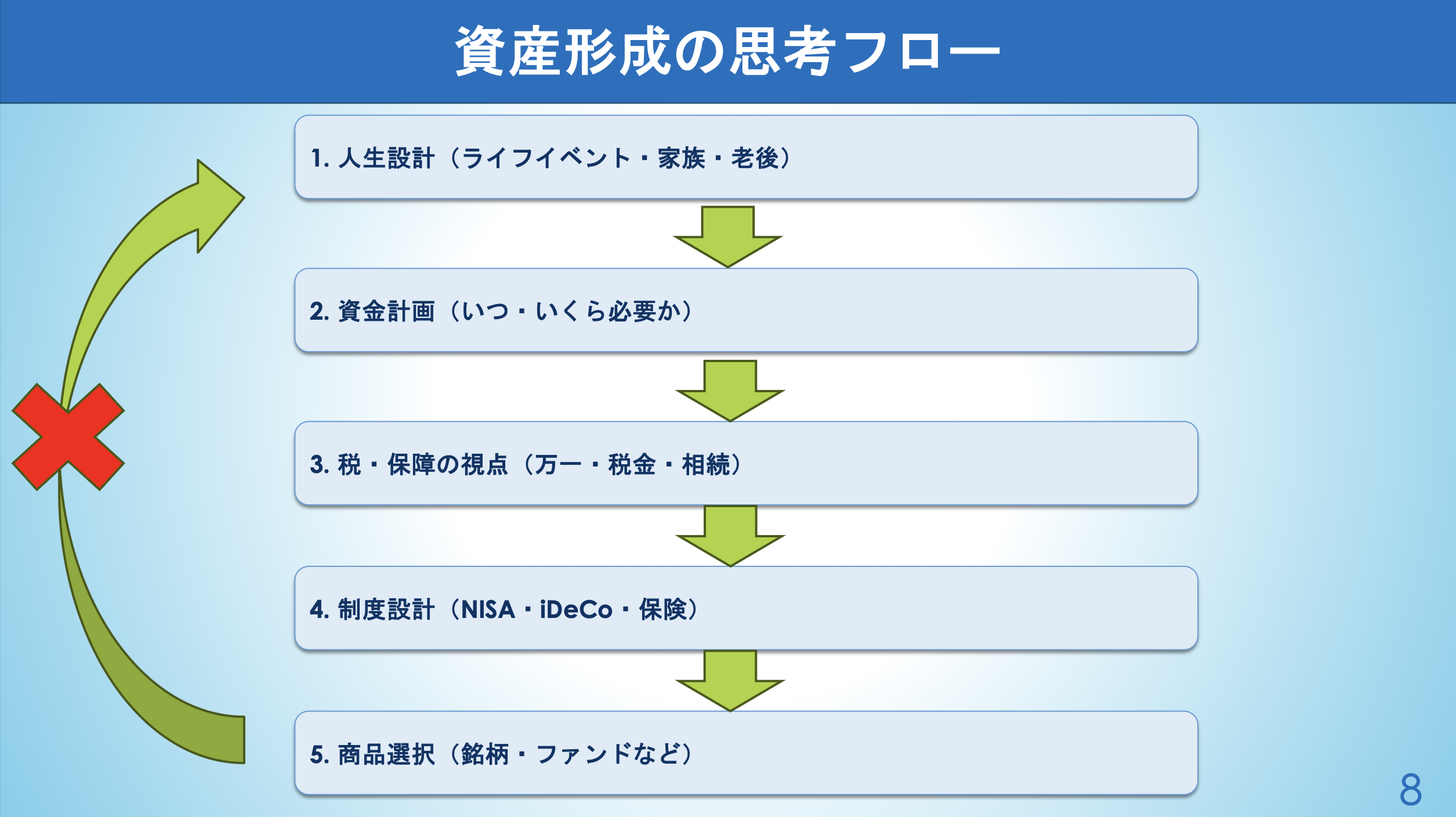年齢や家庭の状況、あるいは市況も含めて、商品を変えていく必要があります。
