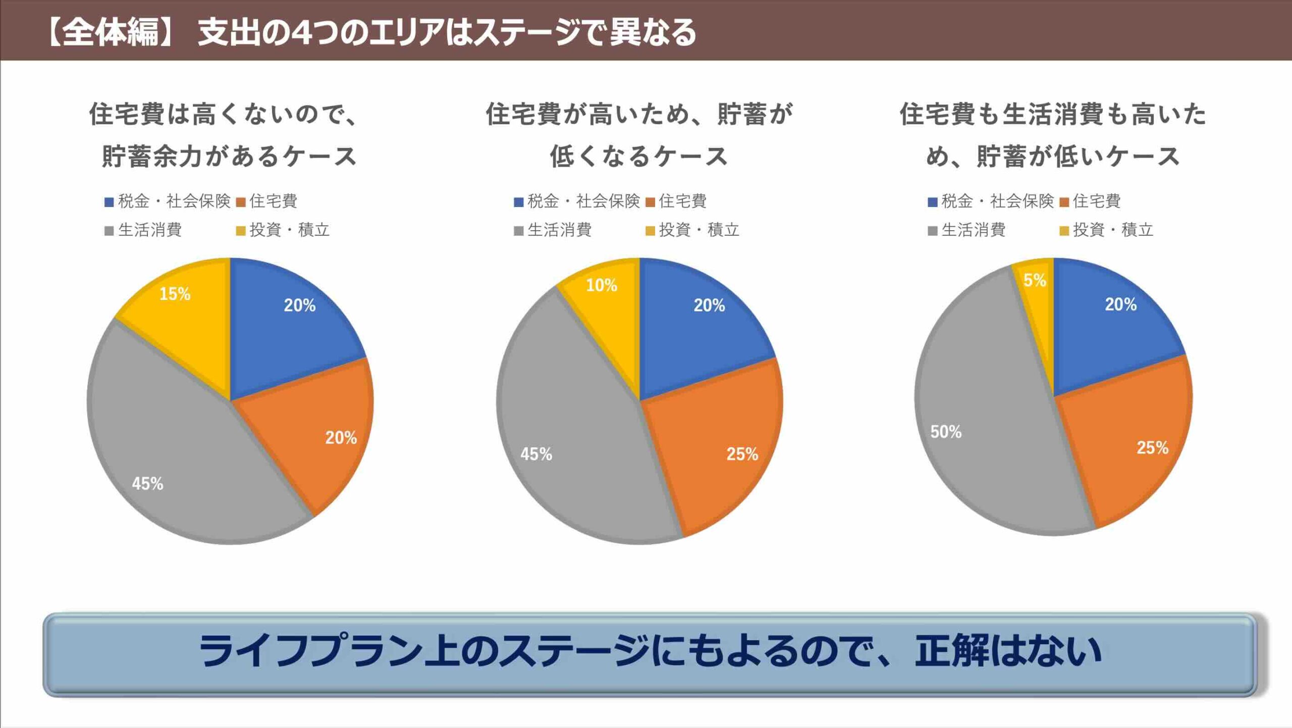 さらに理想のケースと、教育、住宅、老後に分解して問題点と目指していくべき方法について解説します。