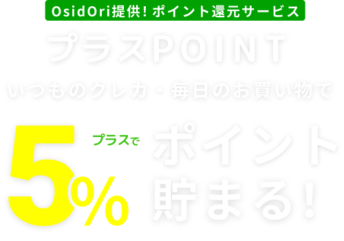 通常のクレカで付与されるポイントはそのままで、追加で決済額の5%分の「プラスPOINT」が付与されます。